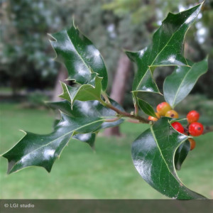 Grand arbuste ou petit arbre au feuillage persistant, épineux quand il est jeune, apprécié pour sa fructification rouge particulièrement décorative. Isolé, groupe, topiaire, haie défensive.
