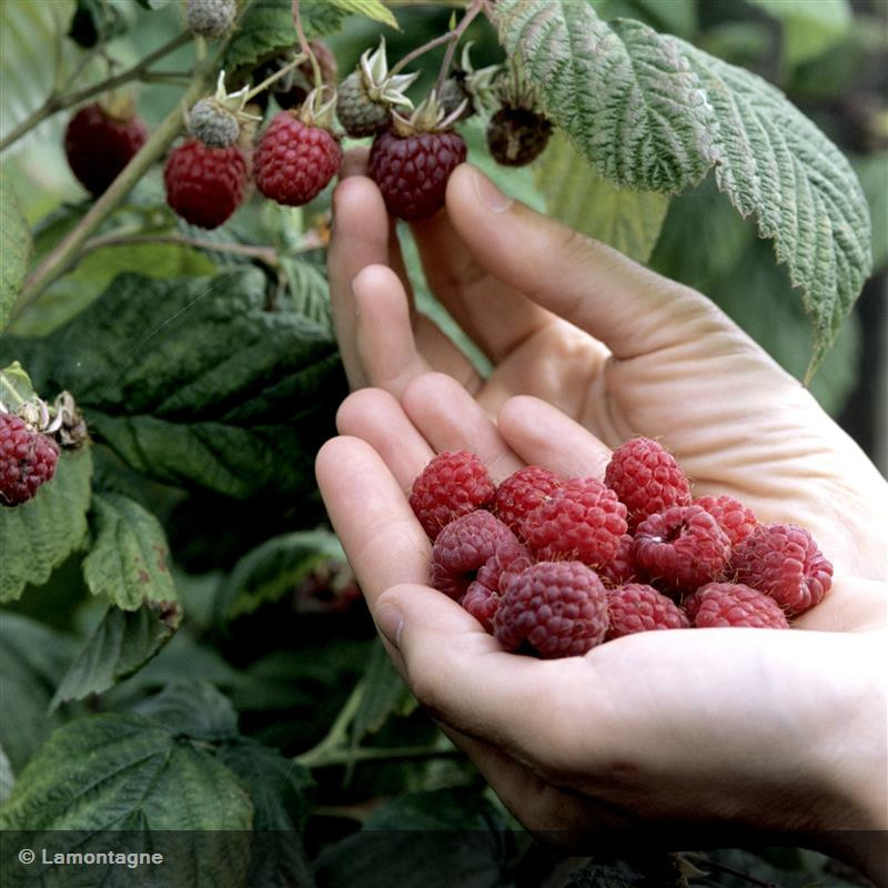 'Meeker' est un classique chez les framboises productives. Vous récolterez facilement à la fin juillet d'assez gros fruits, fermes et sucrés. Arrondis à coniques, ils se conservent assez bien frais.Choisissez une exposition ensoleillée à ombragée et évitez les sols lourds et trop humides l'hiver (risques de Phytophtora). Apportez de la matière organique en automne et paillez pour maintenir une bonne fraîcheur en été. Après la récolte, supprimez en août les tiges ayant fructifié et ne gardez que 8 à 10 cannes parmi les plus fortes, par mètre linéaire ou par touffe.