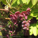 Sa floraison printanière prolongée, qui évoque légèrement la glycine ou les pois de senteur, est très singulière, présentant des grappes de fleurs compactes d'une teinte mauve-pourpre.